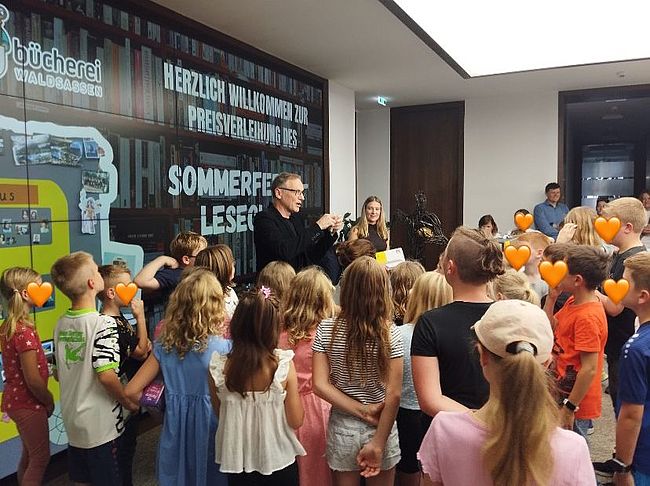 Der Sommerferien-Leseclub der Stadtbücherei Waldsassen endete mit einer fröhlichen Preisverleihung. 68 Kinder lasen gemeinsam 885 Bücher. Bürgermeister Bernd Sommer eröffnete die Feier und sorgte mit seiner Frage, wer wohl mehr gelesen habe, für viel Gelächter – die Kinder antworteten lautstark mit „Ja!“.