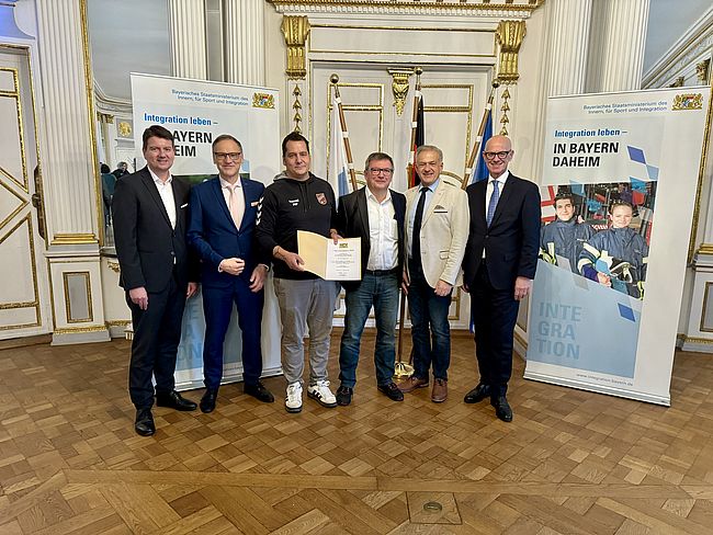 Bei einem Festakt im Spiegelsaal der Regierung der Oberpfalz zeichneten der Staatssekretär des Innern, für Sport und Integration, Sandro Kirchner, und Regierungspräsident Walter Jonas fünf herausragende Initiativen und Gruppen aus, die sich in besonderer Weise um Integration und gesellschaftlichen Zusammenhalt verdient gemacht haben.