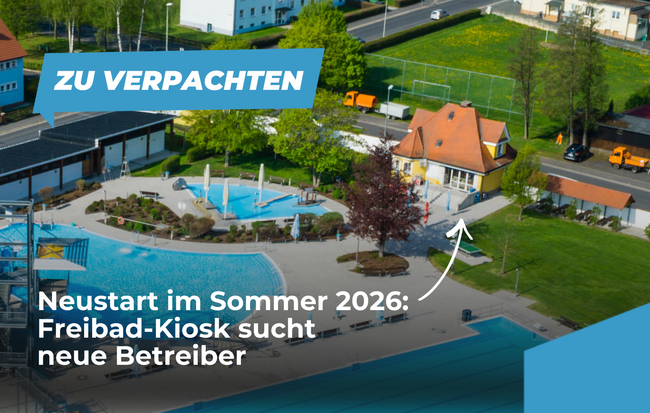Die Stadt Waldsassen verpachtet ab der Badesaison 2026 den Freibad-Kiosk im beliebten Egrensis-Freibad (Badstraße 9). Das Freibad ist ein attraktiver Treffpunkt für Familien, Schwimmbegeisterte und Freizeitsportler und bietet beste Voraussetzungen für einen gut besuchten Kioskbetrieb.